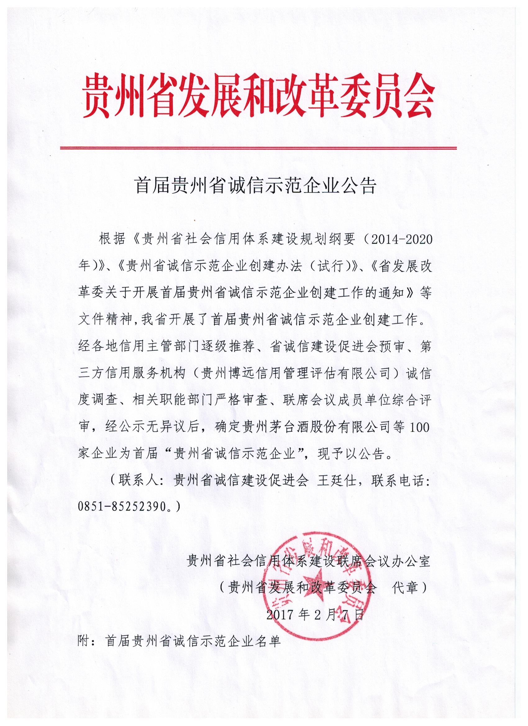 附件:首届贵州省诚信示范企业名单(排名不分先后)