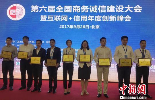 ![]() 9月26日,第六届全国商务诚信建设大会暨“互联网+”信用年度创新峰会在京举行。图为“互联网+”创新竞争力领域的优秀信用企业在会上获表彰。
