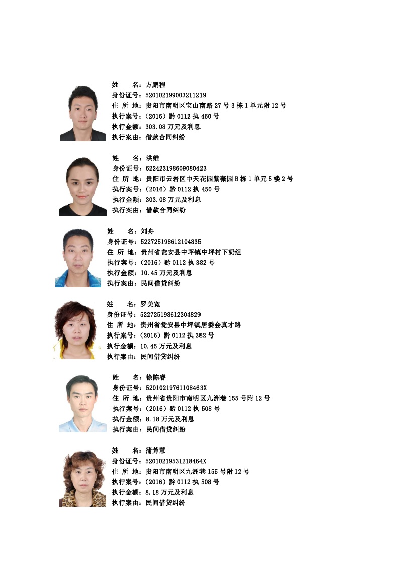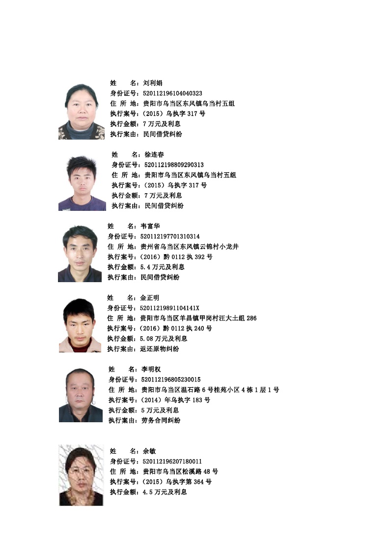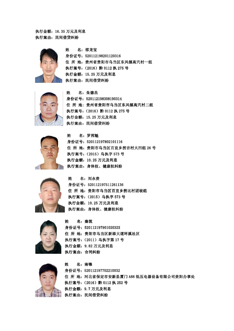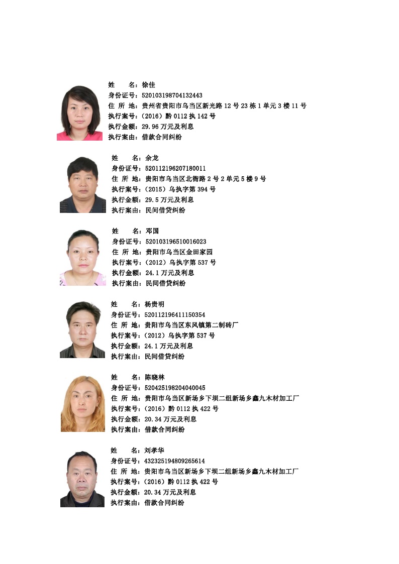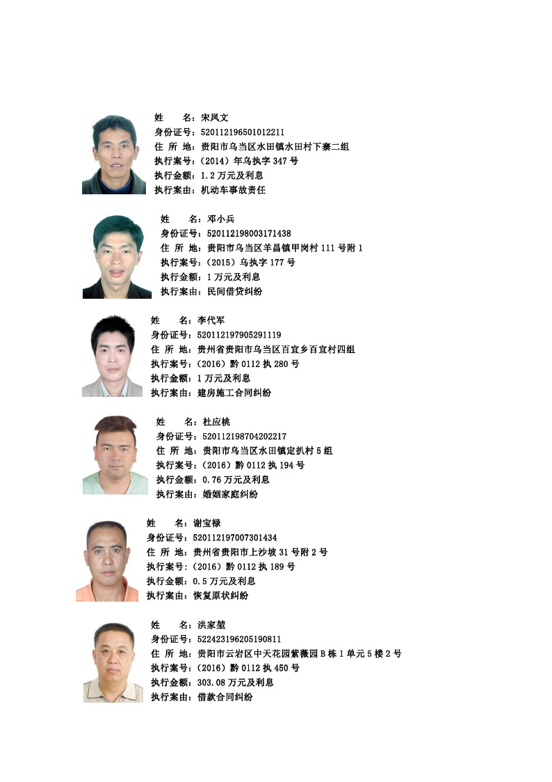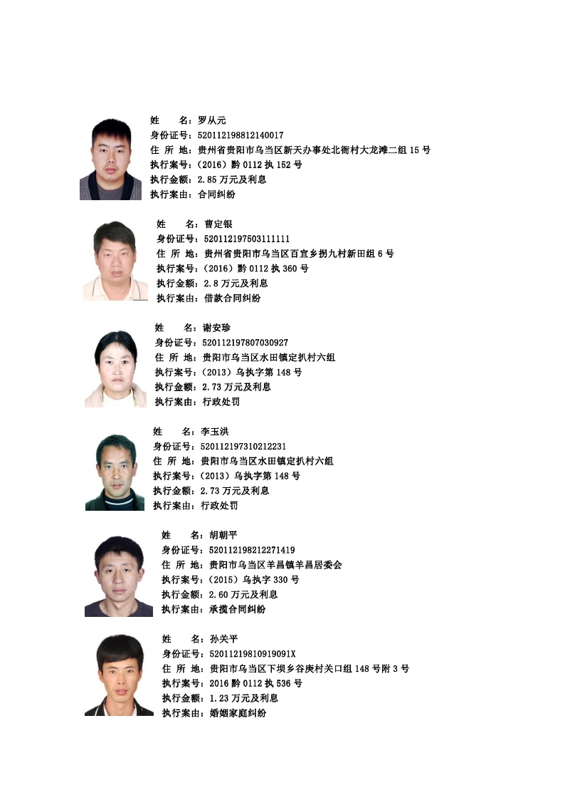 贵州省贵阳市乌当区人民法院失信被执行人名单公告(第一期)