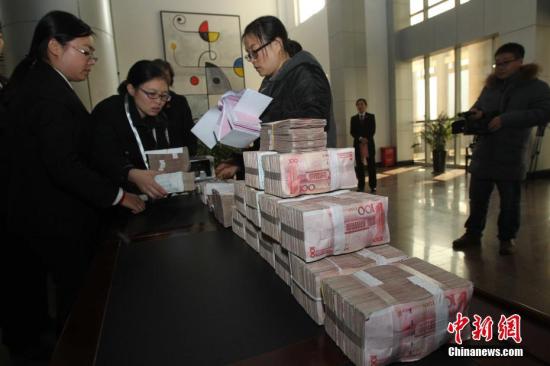 资料图:河南中牟法院发放执行款,失信录入使“老赖”在银行贷款、置产置业、乘飞机坐高铁、住星级宾馆、出国出境等方面受到限制。王中举 摄