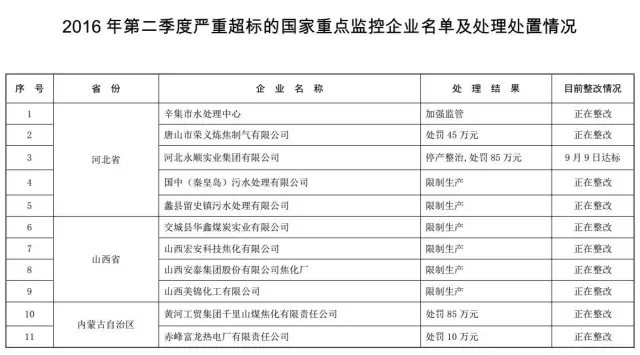 环境保护部日前公布第二季度排放严重超标的国家重点监控企业名单,这份名单根据国家重点监控企业主要污染物排放自动监控数据汇总整理。