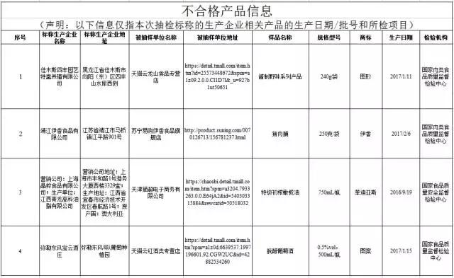 对抽检中发现的不合格产品,国家食品药品监督管理总局已通报相关省份依法予以查处,并要求黑龙江、江苏、江西、云南等省食品药品监督管理局责令生产企业查清产品流向、召回不合格产品、分析原因进行整改;要求天津、内蒙古、江苏、云南等省(区、市)食品药品监督管理局责令流通环节有关单位立即采取下架等措施控制风险;要求浙江、江苏等省食品药品监督管理局责令网络食品交易平台对不合格产品立即采取下架等措施控制风险、查清入网经营者信息并及时通报相关食品药品监管部门。不合格食品生产经营者、网络食品交易平台所在地省级食品药品监管部门自通告发布之日起7日内向社会公布风险防控措施,3个月内向国家食品药品监督管理总局报告核查处置情况并向社会公布。