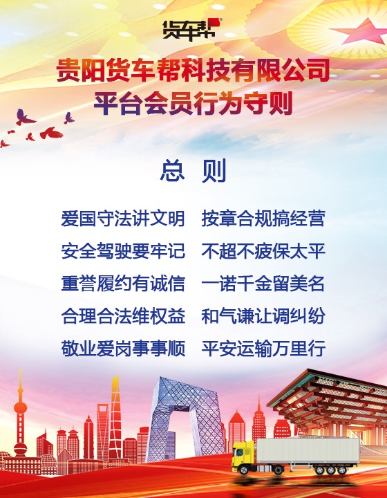 货车帮平台的用户签名,承诺遵守《会员行为守则》 为了保障守则能真真正正地被货车帮的用户执行,发挥效果,货车帮将结合守则建立会员信用评价体系,对会员的信用情况及遵守守则的情况开展分级评价,评价结果在平台上公布,并相应进行奖惩奖励手段。根据星级评价的结果,相应给予会员优质货源置顶、积分优先变现、金融支持优惠、投诉优先调处、专职服务顾问等奖励。同时,对信用评分值低于基础合格分值的会员,将对其平台使用采取相应的限制性,比如优质货源屏蔽、上线时间屏蔽、高峰时段信息发布屏蔽等。 |