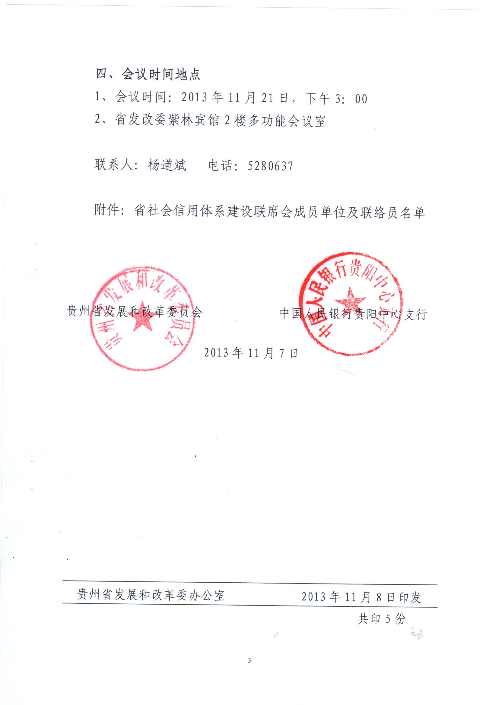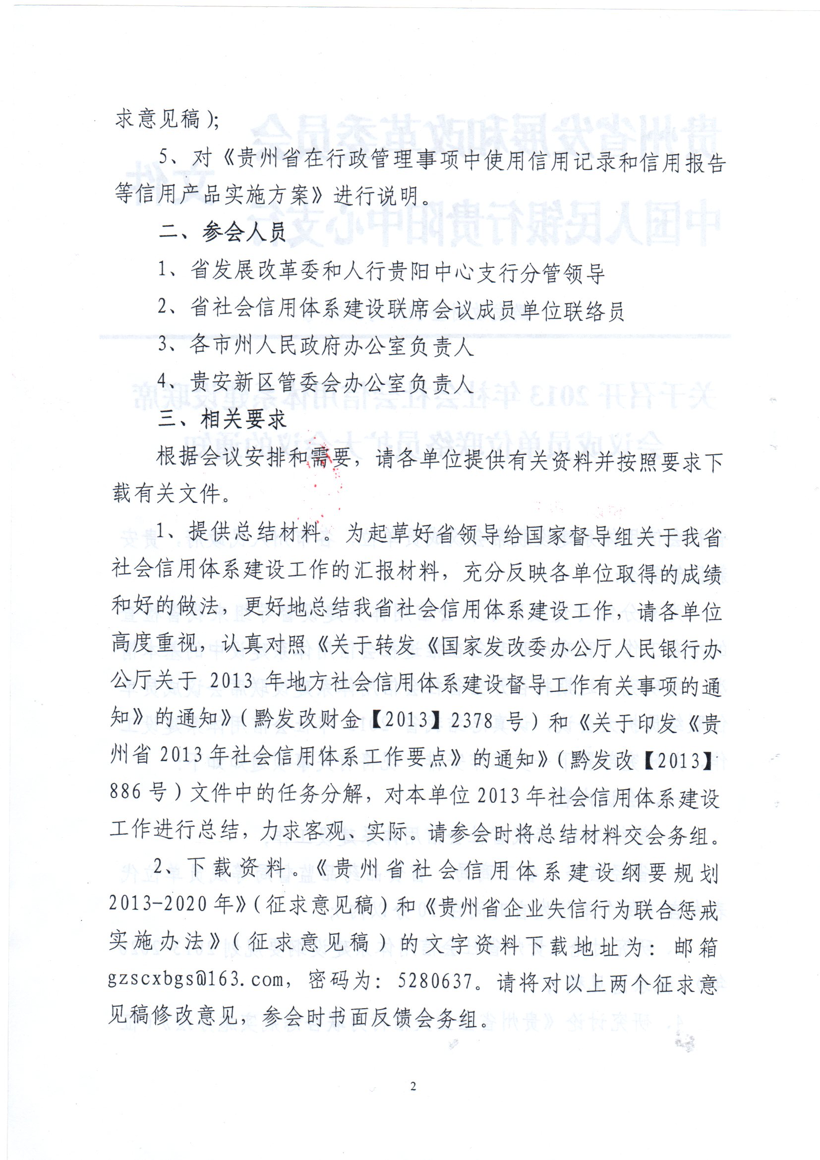 关于召开2013年社会信用体系建设联席会议成员单位联络员扩大会议的通知