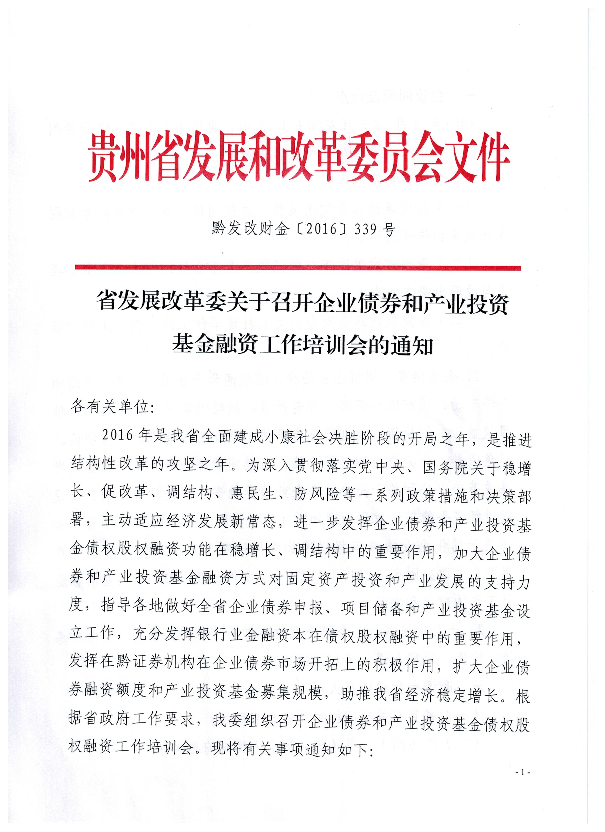 关于召开企业债券和产业投资基金融资工作培训会的通知
