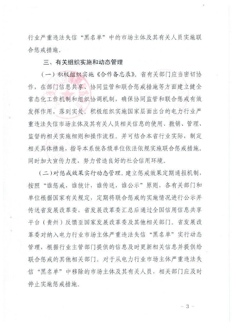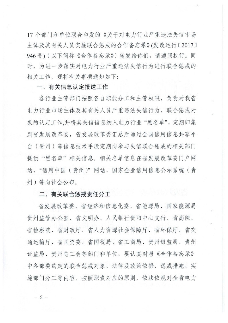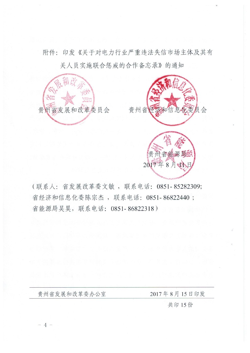 贵州转发关于对电力行业严重违法失信市场主体及其有关人员实施联合惩戒的合作备忘录的通知