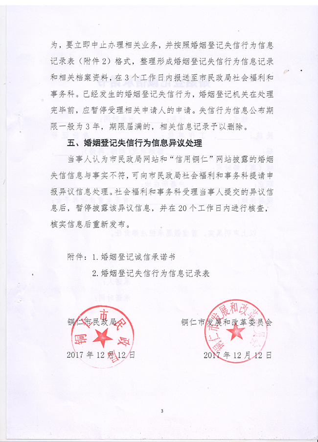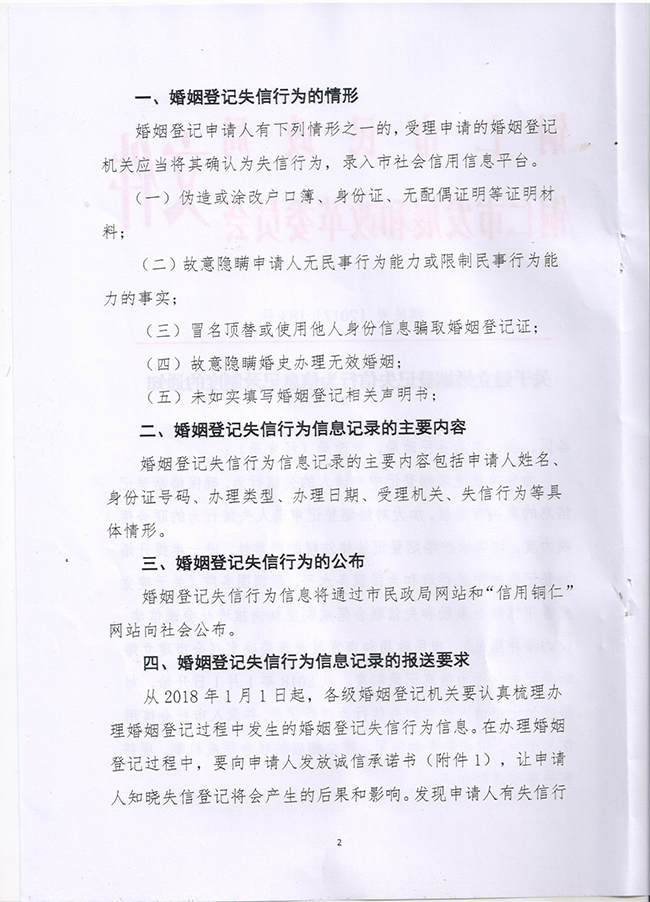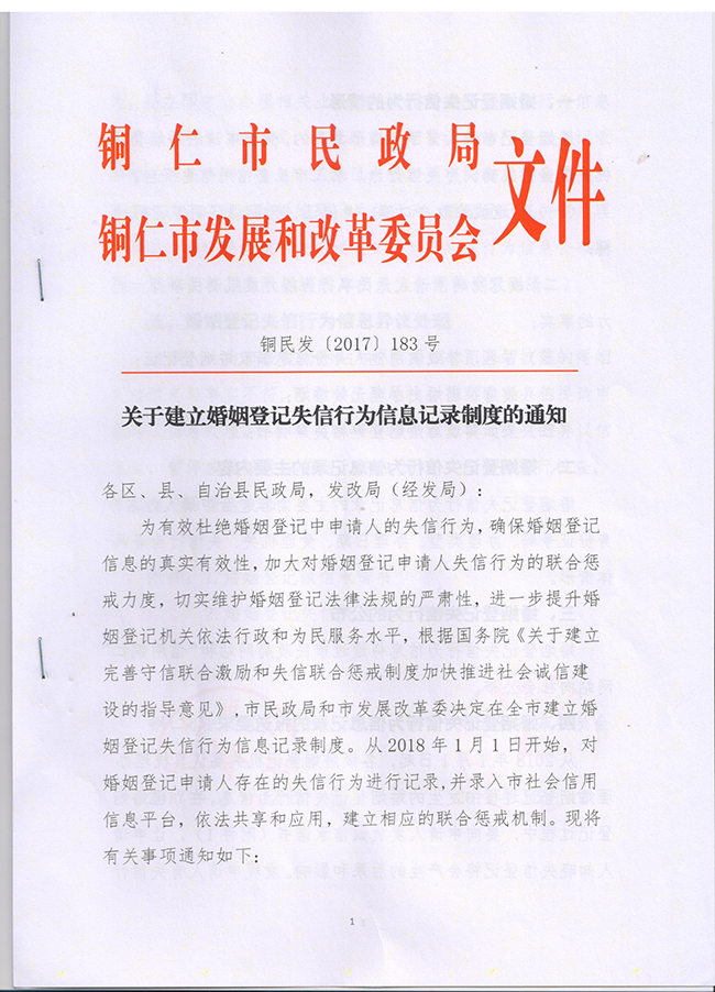 铜仁市:关于建立婚姻登记失信行为信息记录制度的通知