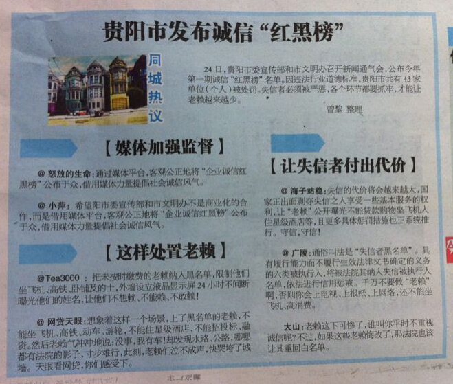 贵阳市发布诚信“红黑榜