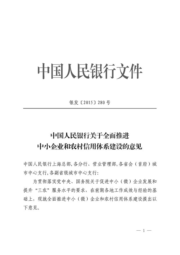 中国人民银行关于全面推进中小企业和农村信用体系建设的意见